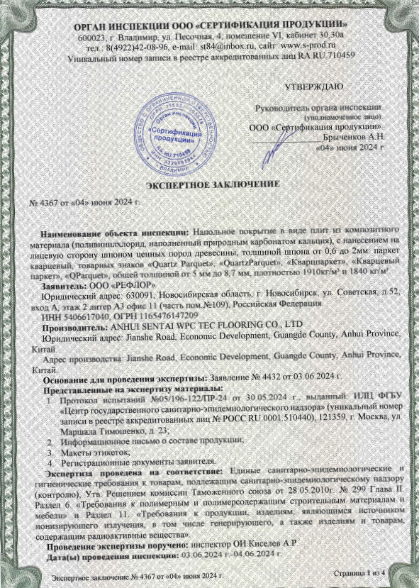 Протокол испытаний Quartz Parquet